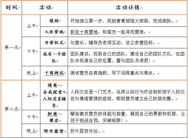 行程:根据天气、交通和营员学习进展情况,青青部落保留调整活动顺序及个别项目的权力,活动总量不变。