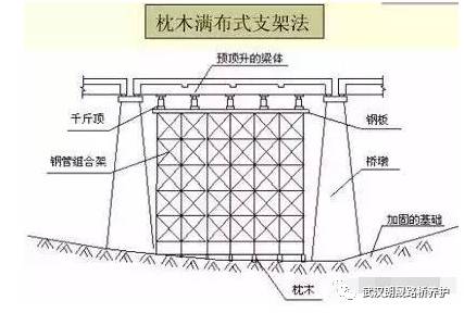 其一是枕木满布式支架法替换支座:以枕木为根底设置布满式或者有些木支架至桥梁梁体处,支架上安顿千斤顶,长处是操作简洁,缺陷是工期长,本钱高,不适宜墩体过高的工程。http://www.lsqlzzgh.com