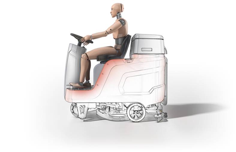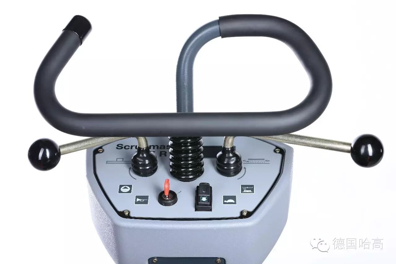 牛角式方向杆操纵更轻便,轻轻地推动两侧的推杆即可开启洗地吸干功能。