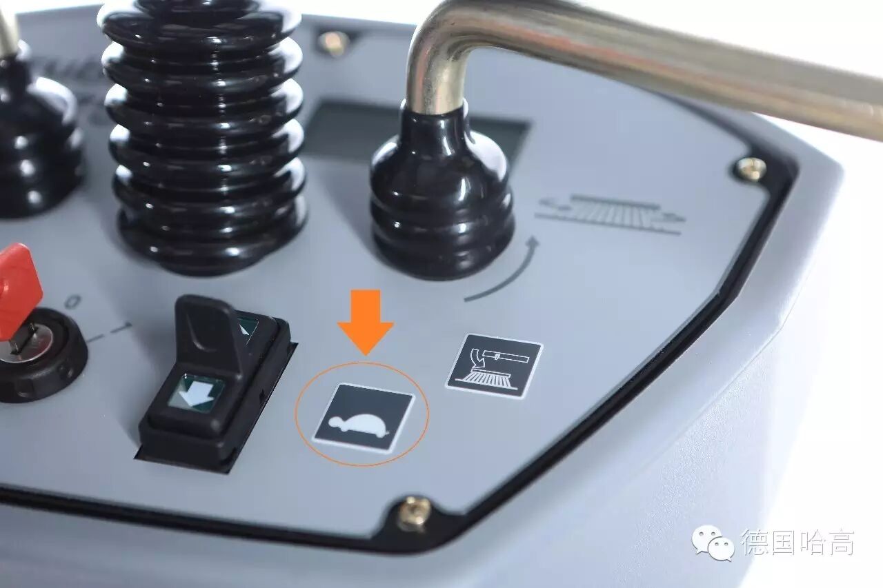 标配限速开关,按下后,车速可被限制在3km/h以内,以便提高清洁效果。保证人员安全。