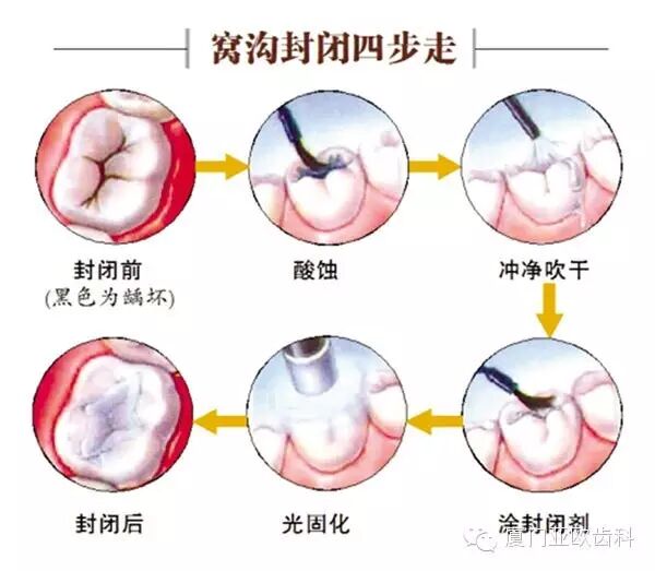 同样还有一个机会,是在牙齿刚长出来龋齿未发生的时候,有一种技术叫窝沟封闭,也是几十至几百元不等,做了窝沟封闭可以一定程度预防咬合面龋齿。有文献表明,即便窝沟封闭磨损了,做过窝沟封闭的牙的患龋率及程度依然低于未做过窝沟封闭的牙齿。